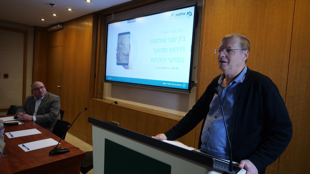 הכנס השנתי של עולמות - בית הספר ללימודי יהדות ותרבות ישראלית בנושא: "בין שני עולמות: חידוש ומחקר במדעי היהדות",שהתקיים ביום רביעי כ"ה בטבת תשפ"ו (14.1.26) בקמפוס אוניברסיטת בר-אילן, הפגיש חוקרות וחוקרים מתחומים מגוונים במדעי היהדות לדיון במתח הפורה שבין מסורת לחדשנות, בין עבר להווה ובין מחקר קלאסי לשאלות עכשוויות. הכנס התקיים לאורך יום שלם וכלל שלושה מושבים אקדמיים מרכזיים.